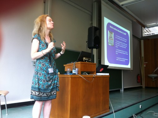 Lisa then proceeded with her lively description of the present situation of the Welsh language . She mentioned the absence of capital city till 1955., of the fact that Welsh became official language as of 1957. Certain aspects of legal system are becoming more welsh. She reminded us of the small size of her country. A lot of welsh speakers complain that welsh was once spoken all over britain. It could be seen as a language of the past but there’s more beyond. Welsh was widely spoken and is still proudly spoken. Several people over the survey she conducted and described in her presentation mentioned the pride of being welsh. Last figures show an increase in Welsh speakers. Cardiff, heart of industrial revolution. There were always some Welsh communities there but due to industrial revolution, it was largely taken over by english speaking. 1978, 1st Welsh school. The initial director had to pass protest pannels while driving to his school. Now 3 Welsh medium and two bilingual primary schools plus starter units in several English medium school. From September 2012, all 3-7 year olds in EM schools following the bilingual Foundation Phase. Ingreased focus on attaining bilingualism in all EM 11-19 school. Lots of non-welsh origin school children are enrolling. Success right now but what about the future….