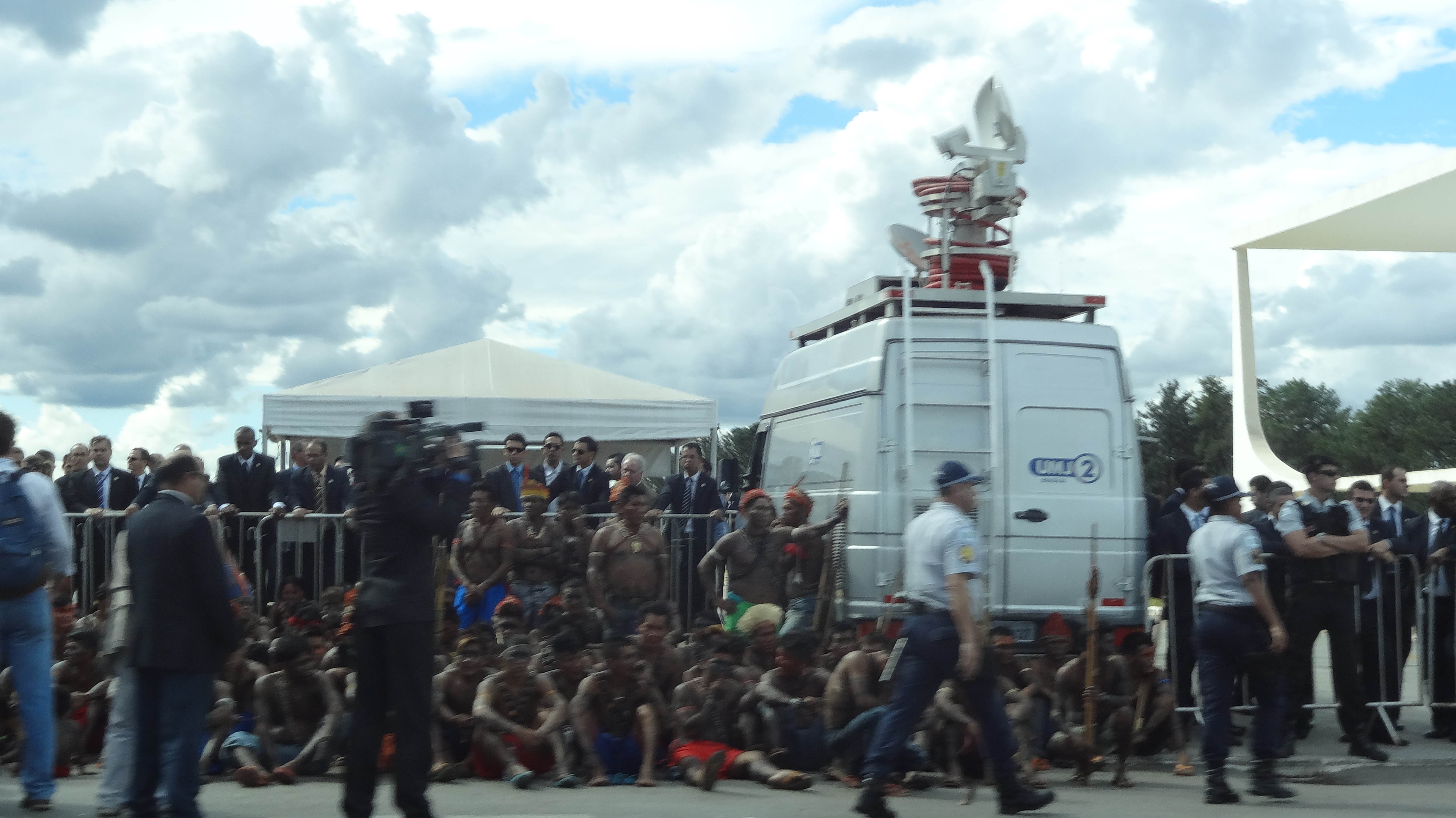 Upon leaving the restaurant, I was able to witness an Kayapo sit-in in front of the Presidential Palace PHOTO in the very serious feud opposing them to the FUNAI (National Indian Foundation) in the Mato Grosso as they demand investigation and clear demarcation of their land. As I follow the news, I can clearly testify that their language skill in Brazilian is quite limited which means that they are quite unilingual.Brasilia 566 The situation is extremely preoccupying as a Terena « Indian » was killed by the Police recently, leading Brazil’s head of the Indigenous Affairs Department, Dr. Marta Azevedo, to resign just that day (June 7th). Since Dilma Rousseff has never met any Indigenous leader, a première in the history of democratic Brazil and not necessarily a good sign right when Brazil is in the spotlights of the world with the upcoming World Youth Days in Rio in a month and a half, the Mundial 2014 in EXACTLY a year, and the Summer Olympics of 2016…Mind you, this is nothing compared to the way China couldn’t care less about Human Rights demonstrations in 2008, yet is this a valid reason ?