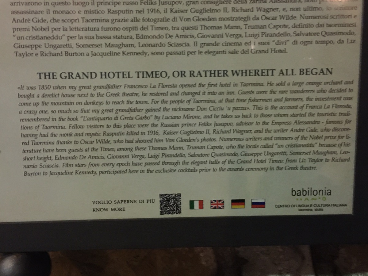 And this is only the end of a day which saw me cry out of laughter at the stuck luggage belts at Catania airport, retrieve a car without any signposting indication (because Sicilans, like Italians trust our intelligence…or believe that only the fittest should survive), think about visiting the Etna today and giving up for lack of clear indication and finally arriving at my long time dream hotel