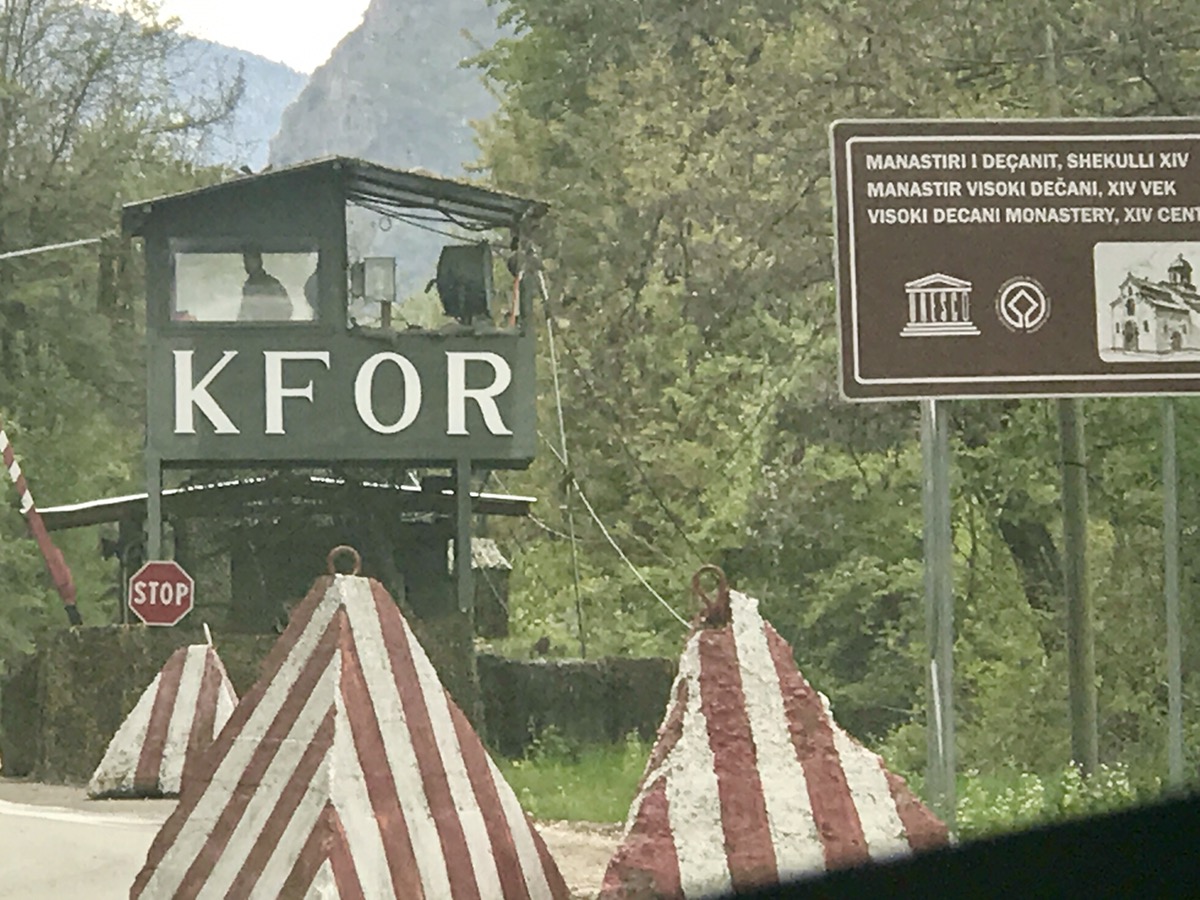Ainsi, si l’albanais et le Serbe sont bien les deux langues officielles du Kosovo, la constitution de 2008 accorde aux langues turque, bosniaque et Rom un statut officiel selon les municipalités concernées. La question est loin de s’arrêter là, mais il me semble intéressant de signaler que selon votre ethnie, le fait de vous exprimer dans une langue plutôt qu’une autre pourrait causer votre perte! La visite notamment du monastère de Decany s’est ainsi déroulée sous la protection des forces internationales… et le plus incroyable est que ce jour là les soldats de la KFOR venaient … d’Ukraine ! Il a d’ailleurs fallu la faire au pas de charge car la route devait être bouclée une demi-heure  plus tard en raison de menaces des forces “albanaises”…