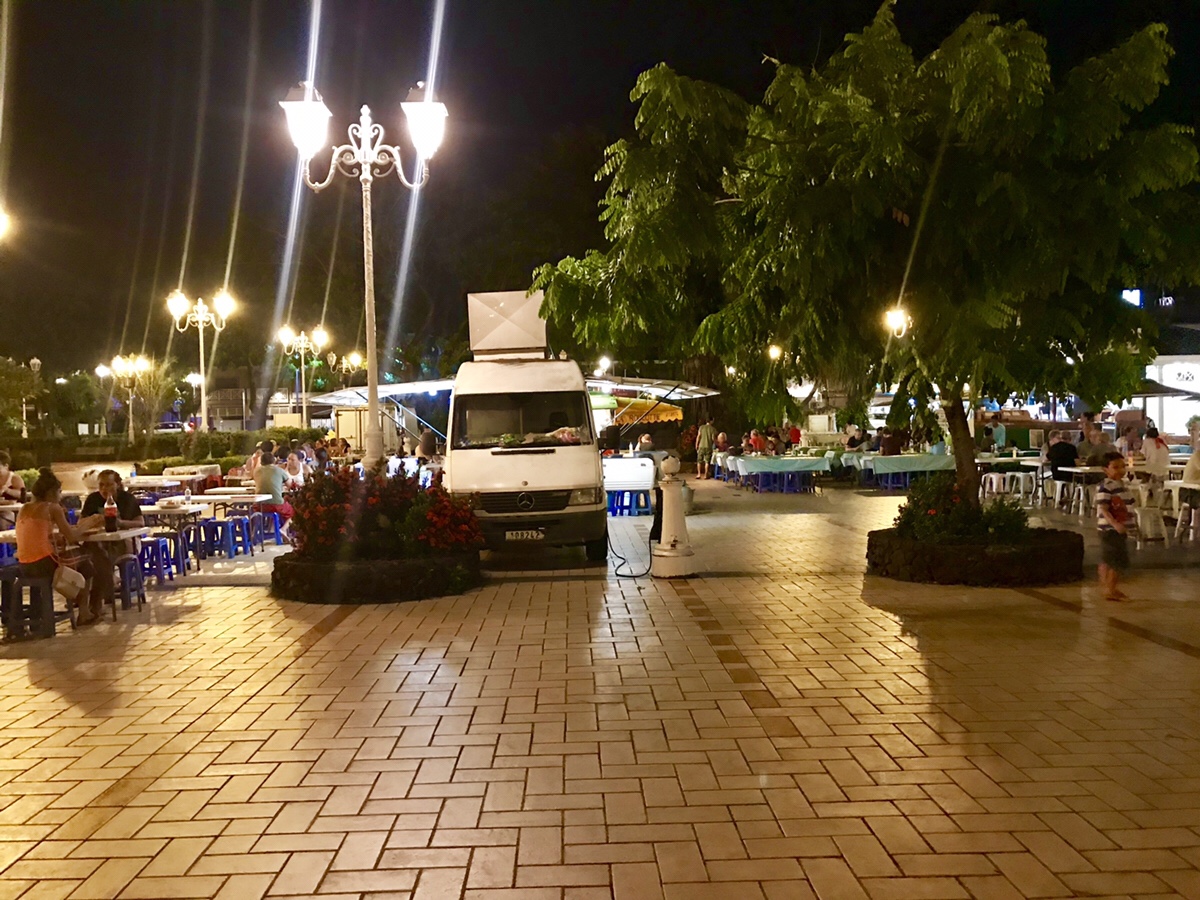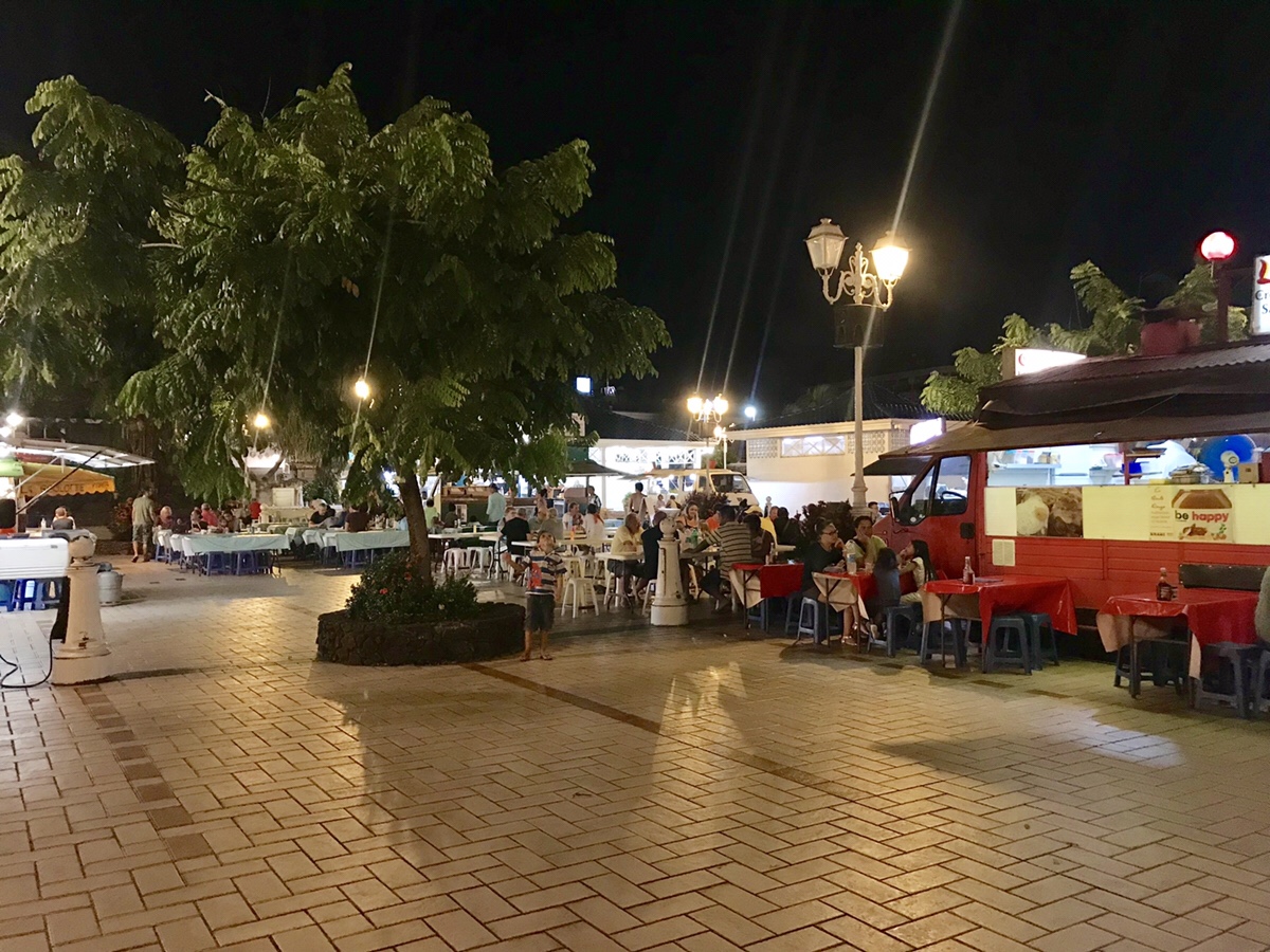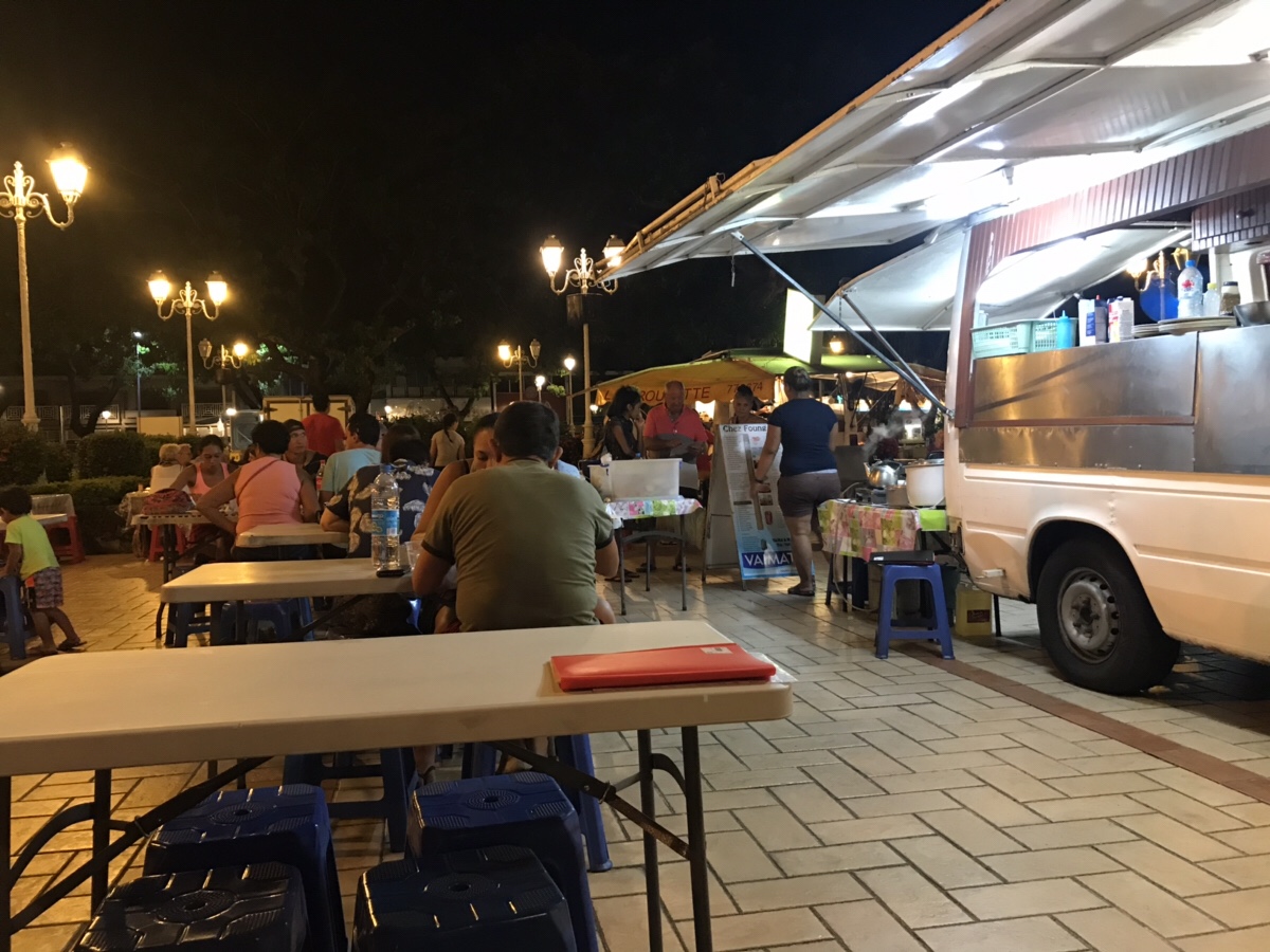 Les Roulottes le soir, Place Vaiete (entre la marina et la gare maritime)