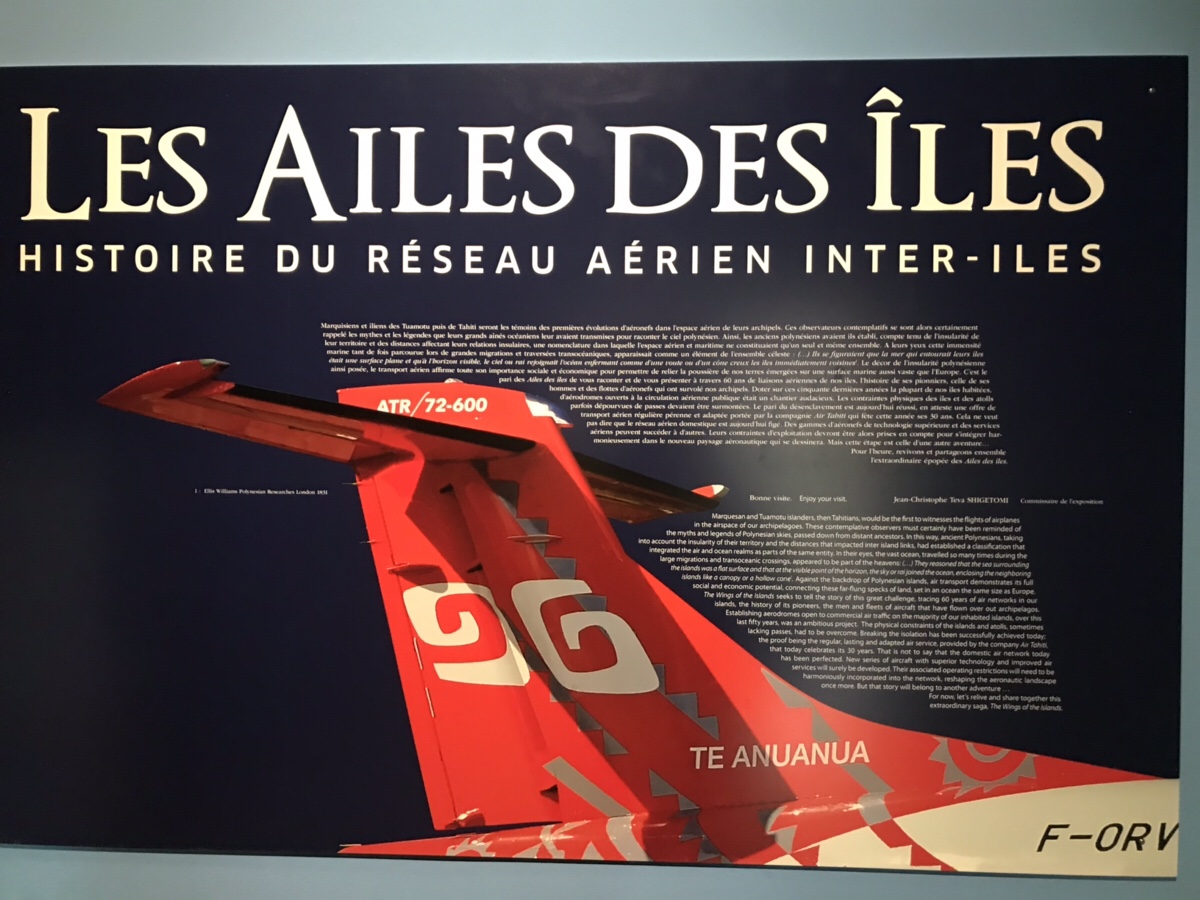 Quelques musées, celui de la perle monopolisée par Robert Wan, et celui de Tahiti et ses îles, très intéressant bien qu’un peu vieillot. Il complète bien le triptyque ébauché par le Bishop Museum, le Te Papa de Wellington et celui d’Adelaide avec en ce moment une rétrospective très intéressante sur l’épopée d’Air Tahiti!