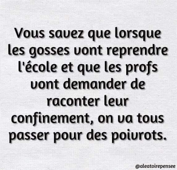 The confirmation that the exams would be based on what had been done at school prior to the confinement. In other terms there was absolutely no reason for me to work from 8 am to 8 pm as anything I’ve done will not be taken into consideration. To say that I’m furious is a very light expression of what I’m feeling right now. I understand that some teachers were simply not able to cope with the situation but the problem was known all along… Oh well humanly it was a fantastic experience and today chatting with my students was a very pleasant feeling as these young fellows are truly extraordinary, all of them. Many started jogging, something they used to hate doing, some have learned to cook and now master it perfectly, Their English has improved dramatically thanks to their watching anglophone programs. I’m glad things are turning well and after all I’ve been paid for what I’ve done. I just wish our government gave us a little more credit. Now, at almost 10 pm, I’m getting ready for an early evening in bed with an excellent book to read since its title is the perfect definition of the virus “à la mesure de l’univers” !