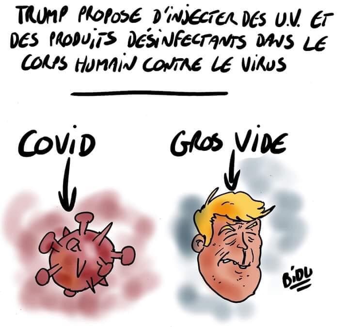 Voilà les amis, je vous laisse avec les goodies et vous verrez que, maintenant que les États-Unis sont touchés, d’autres perspectives se présentent. Toutes ne sont pas du meilleur goût mais elles reflètent l’esprit du moment, l’énervement contre Trump, la reprise des classes, le poids, l’hydroxychloroquine, la nicotine censée protéger les victimes du Covid et le port du masque notamment…Mais commençons par deux vidéos, l’une sur le phénomène maintenant largement répondu de refaire la pose d’un tableau avec les moyens du bord et celui de la réapparition en ville d’animaux sauvages qui se planquaient jusqu’alors .