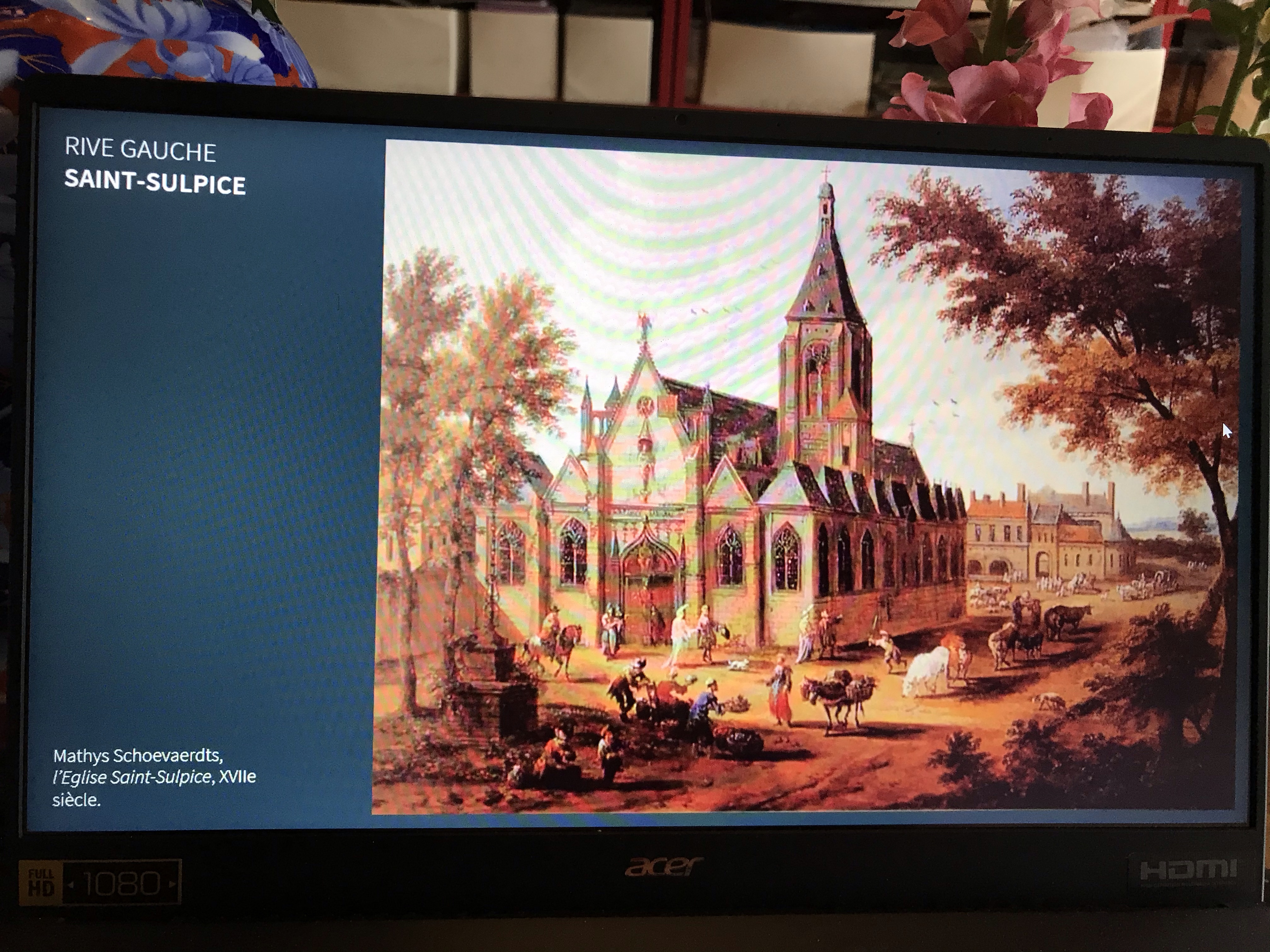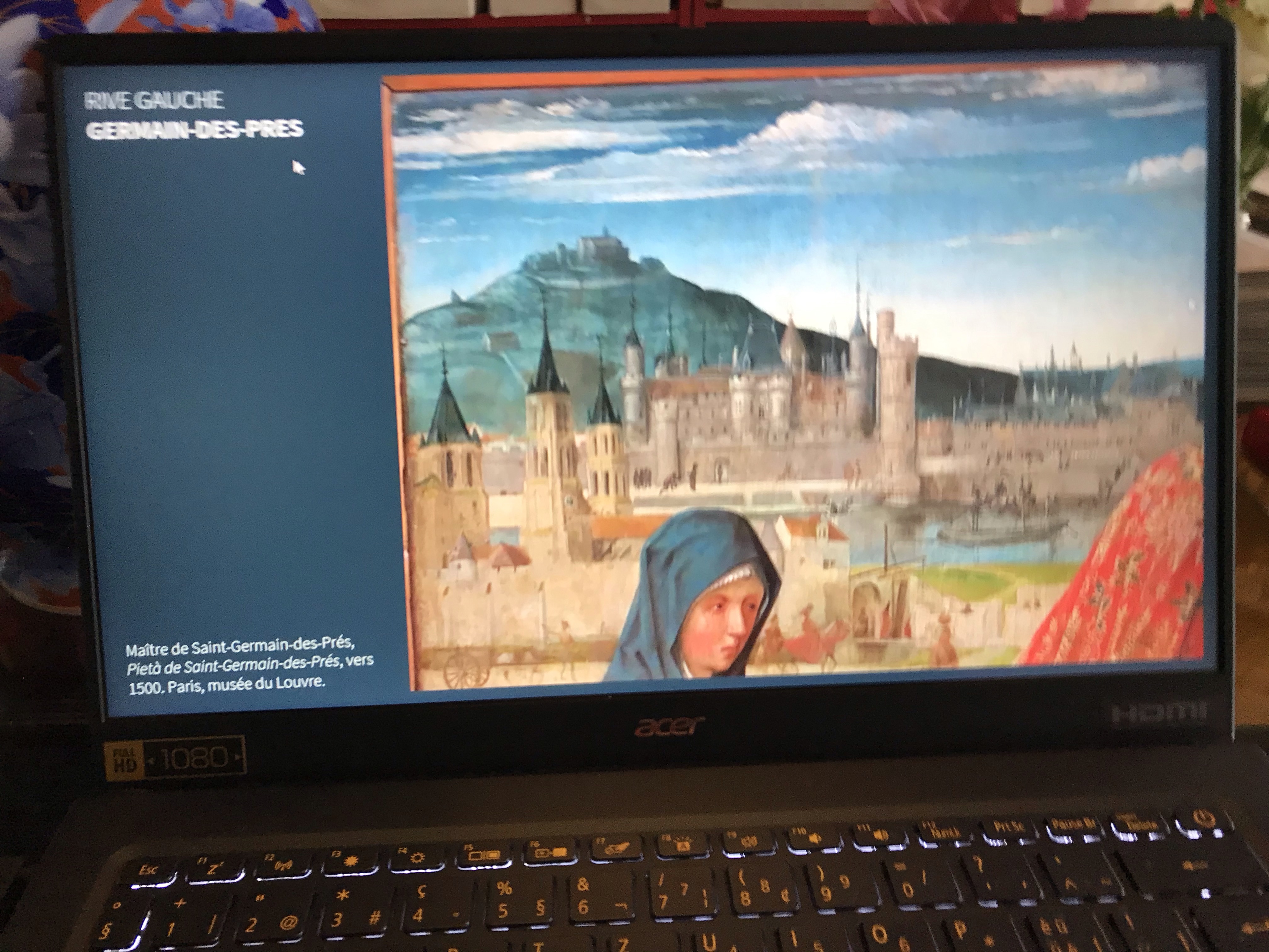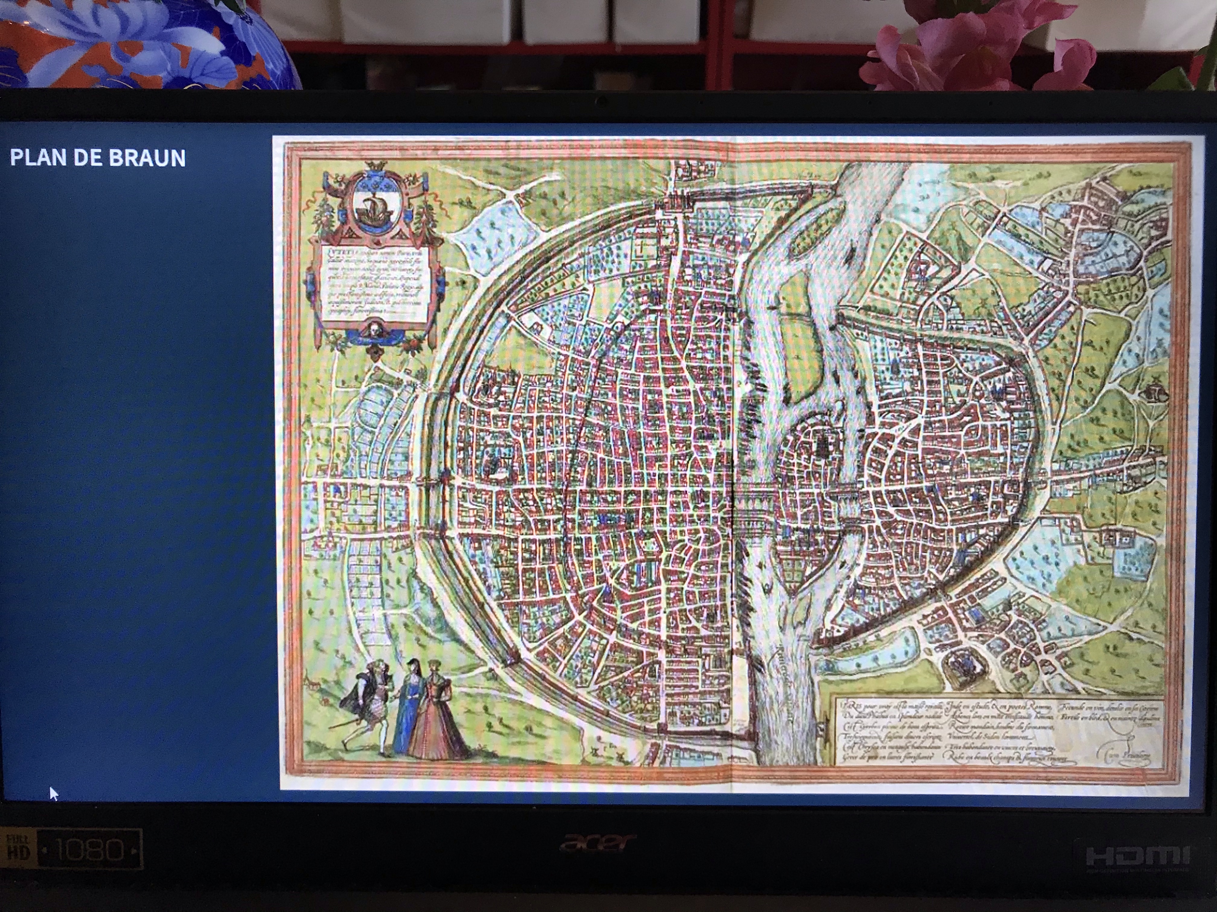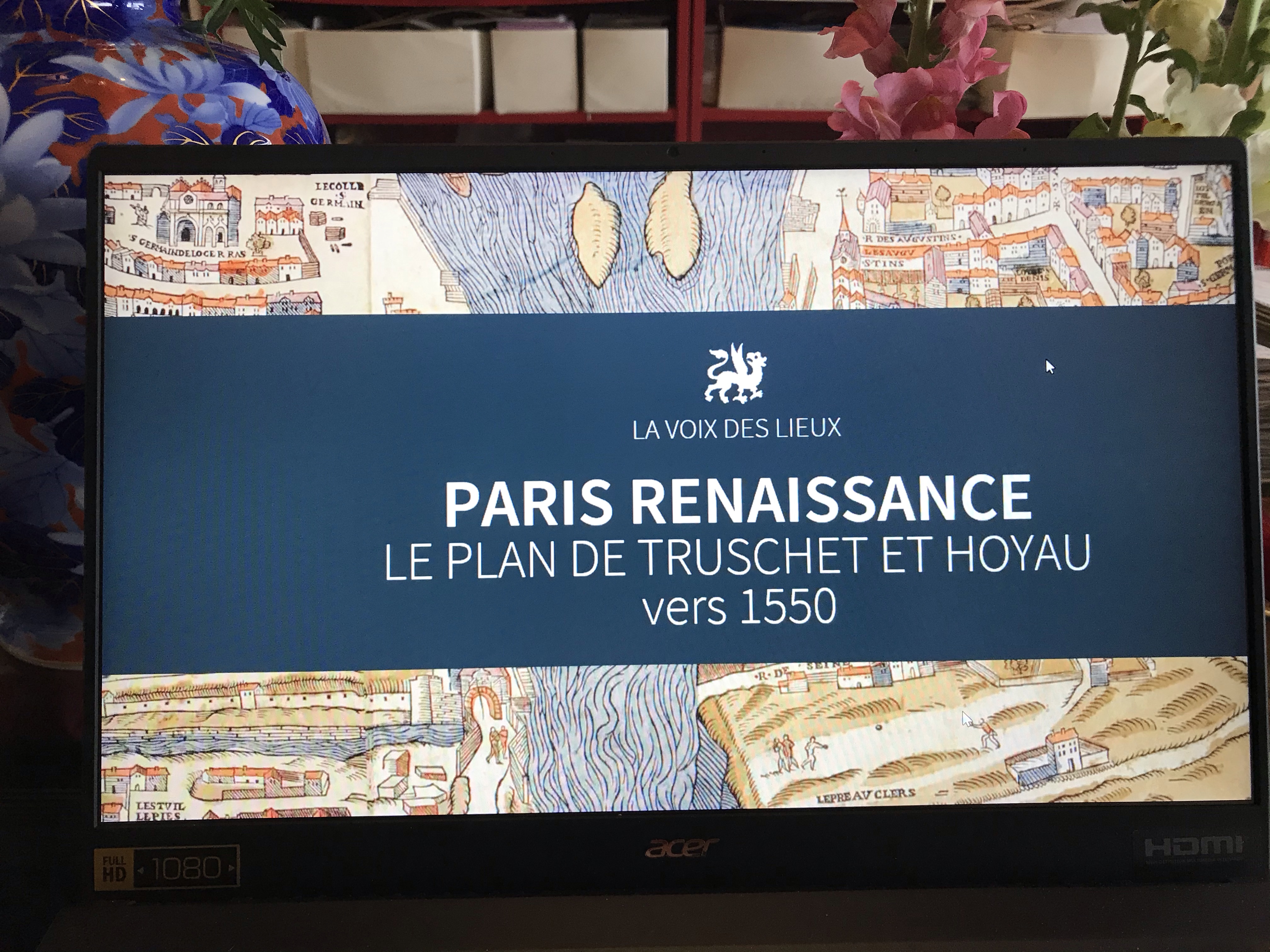 Après le déjeuner, je me suis un peu reposée avant une heure de conférence sur le Paris de la Renaissance, carte à l’appui, ce fut tout à fait intéressant surtout que Marc y assistait aussi et que nous n’avons pas manqué de nous adresser des petits mots sur le chat de la conférence comme de véritables collégiens.