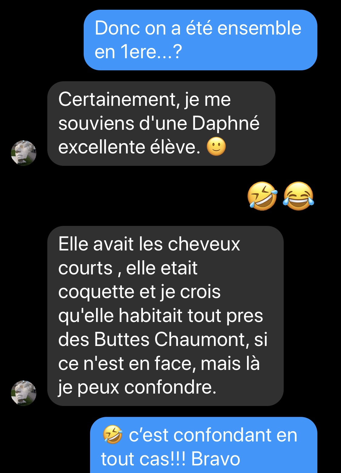 Et j’ai donc décidé d’essayer de retrouver les amis en question. En effet ce message date d’il y a il y a plus de 15ans Et à l’époque les deux amis qui avait initié cette excellente initiative, je ne l’avais pas amené jusqu’au bout à ma connaissance. Cela m’a donné l’occasion de converser un peu avec une amie de lycée que j’ai conservée sur Facebook et qui m’a gentiment écrit ceci.