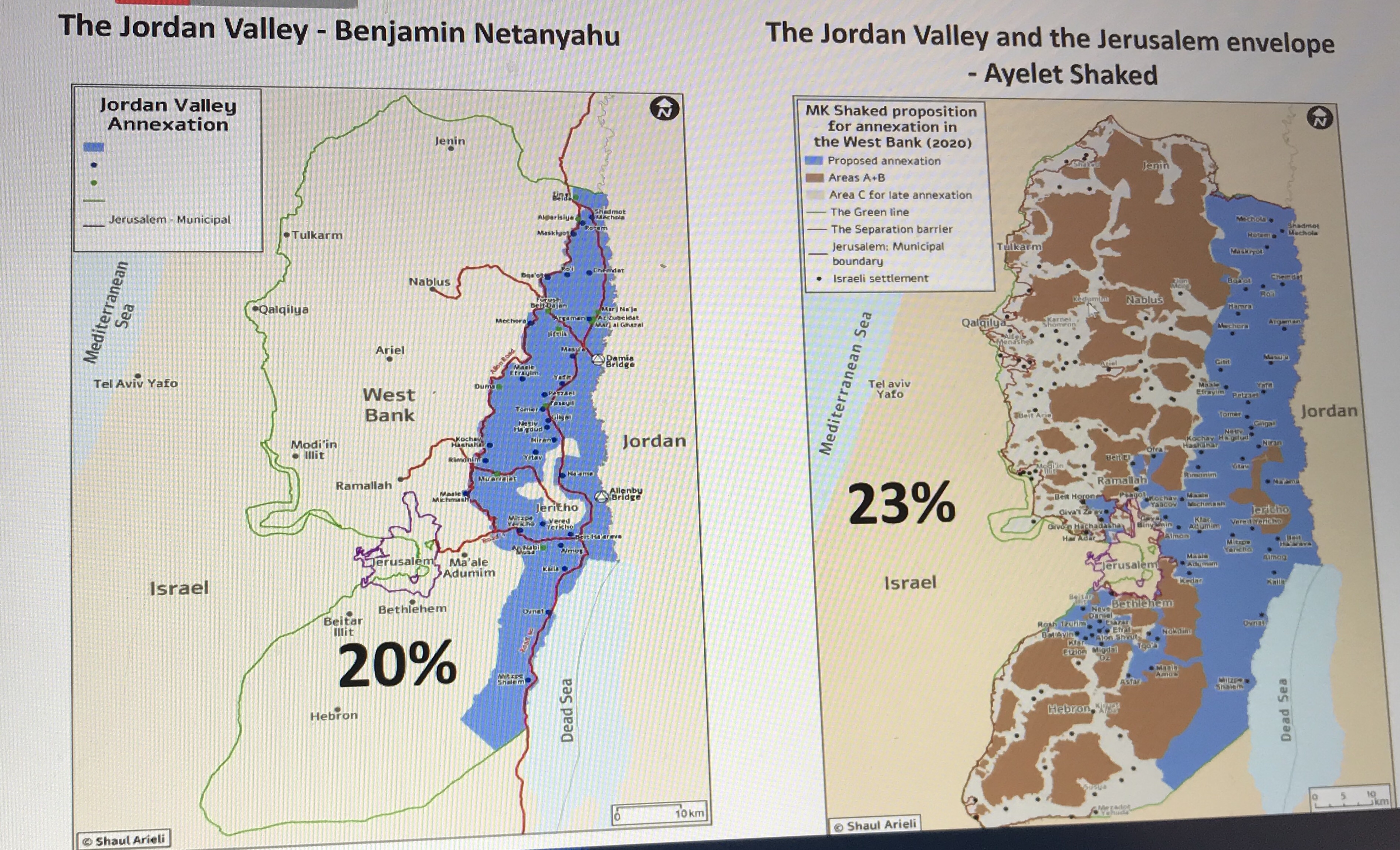 Cependant, j’ai été intriguée d’apprendre que, sur le papier en tout cas, Israël semblait sur le point de franchir l’infranchissable en transgressant le droit international pour annexer la Vallée du Jourdain. J’ai donc répondu présente à l’invitation de l’infatigable David Chemla et de JCall. En voici le contenu pour mes notes et tous ceux que cela intéresse.