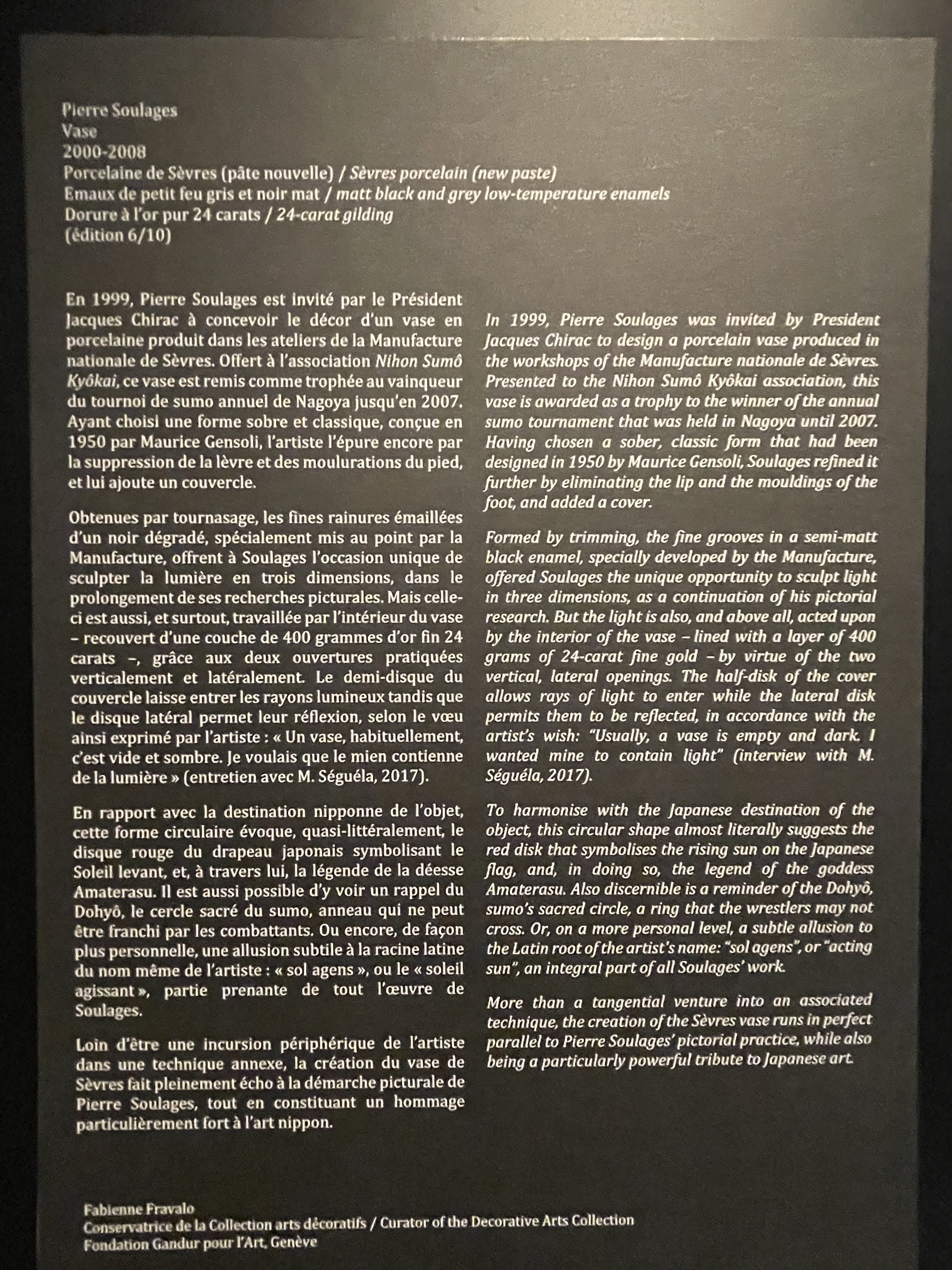 I decided to celebrate it in Geneva’s most Oriental museum, the Baur Foundation, currently holding an exhibition on the Japanese master Tanabe Takeo and Pierre Soulages.